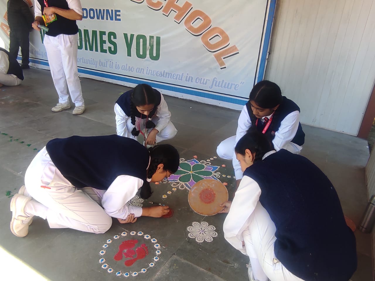 कक्षा 9 से 12 के विद्यार्थियों ने रंगोली प्रतियोगिता में भाग लेकर विद्यालय परिसर को विविध रंगों से सजा दिया। इन रंगोलियों में पारंपरिक कला के साथ-साथ आधुनिक विषयवस्तु की झलक भी देखने को मिली।