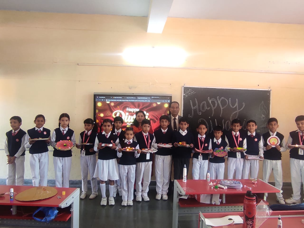 कार्यक्रम की शुरुआत कक्षा 1 एवं 2 के विद्यार्थियों के लिए ‘दिया सजावट’ गतिविधि से हुई, जिसमें नन्हे हाथों ने रचनात्मकता का सुंदर प्रदर्शन किया। कक्षा 3 से 5 के विद्यार्थियों ने ‘थाली सजावट’ प्रतियोगिता में भाग लेकर अपनी कलात्मक प्रतिभा का परिचय दिया।