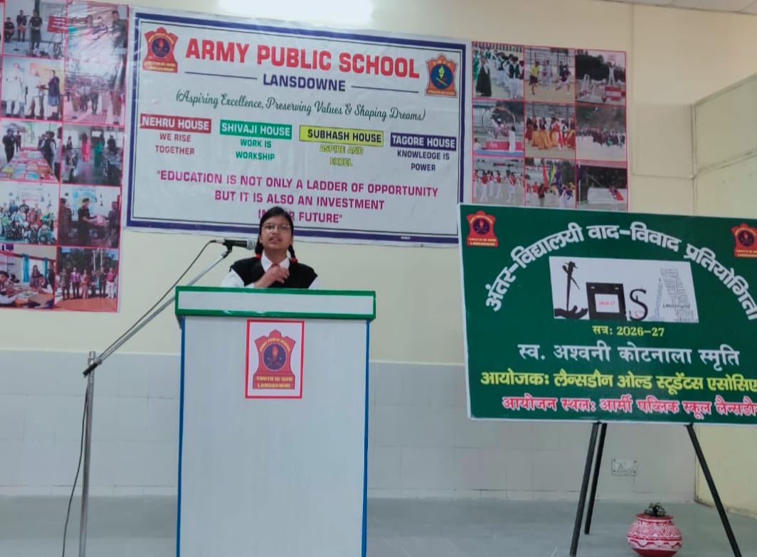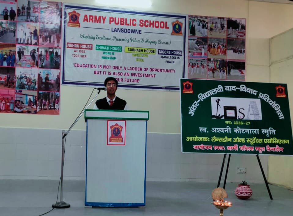 आर्मी पब्लिक स्कूल लैंसडौन में ओल्ड स्टूडेंट्स एसोसिएशन (लोसा) के तत्वाधान में शहर के विद्यार्थियों की तर्क क्षमता, चिंतन व वाकक्षमता विकसित करने के उद्देश्य से अंतरविद्यालयी हिंदी वाद विवाद प्रतियोगिता का आयोजन किया गया।