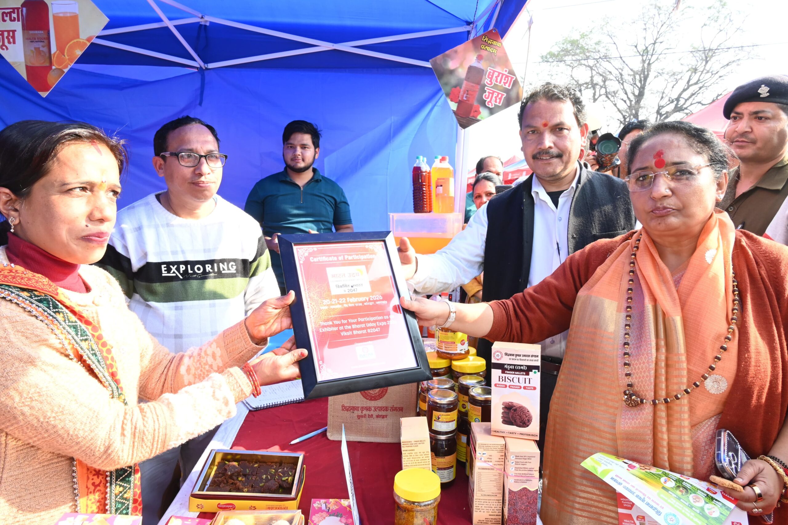 मुख्य अतिथि खण्डूडी भूषण ने प्रदर्शनी में लगाए गए विभिन्न स्टॉलों का अवलोकन किया तथा उत्तराखंड के विभिन्न जनपदों से आई स्वयं सहायता समूहों एवं महिला उद्यमियों द्वारा तैयार उत्पादों की सराहना की। उन्होंने महिलाओं से संवाद करते हुए उनके प्रयासों की प्रशंसा की और कहा कि इस प्रकार के आयोजन महिला सशक्तिकरण, स्वरोजगार एवं आत्मनिर्भर भारत की दिशा में महत्वपूर्ण भूमिका निभाते हैं।