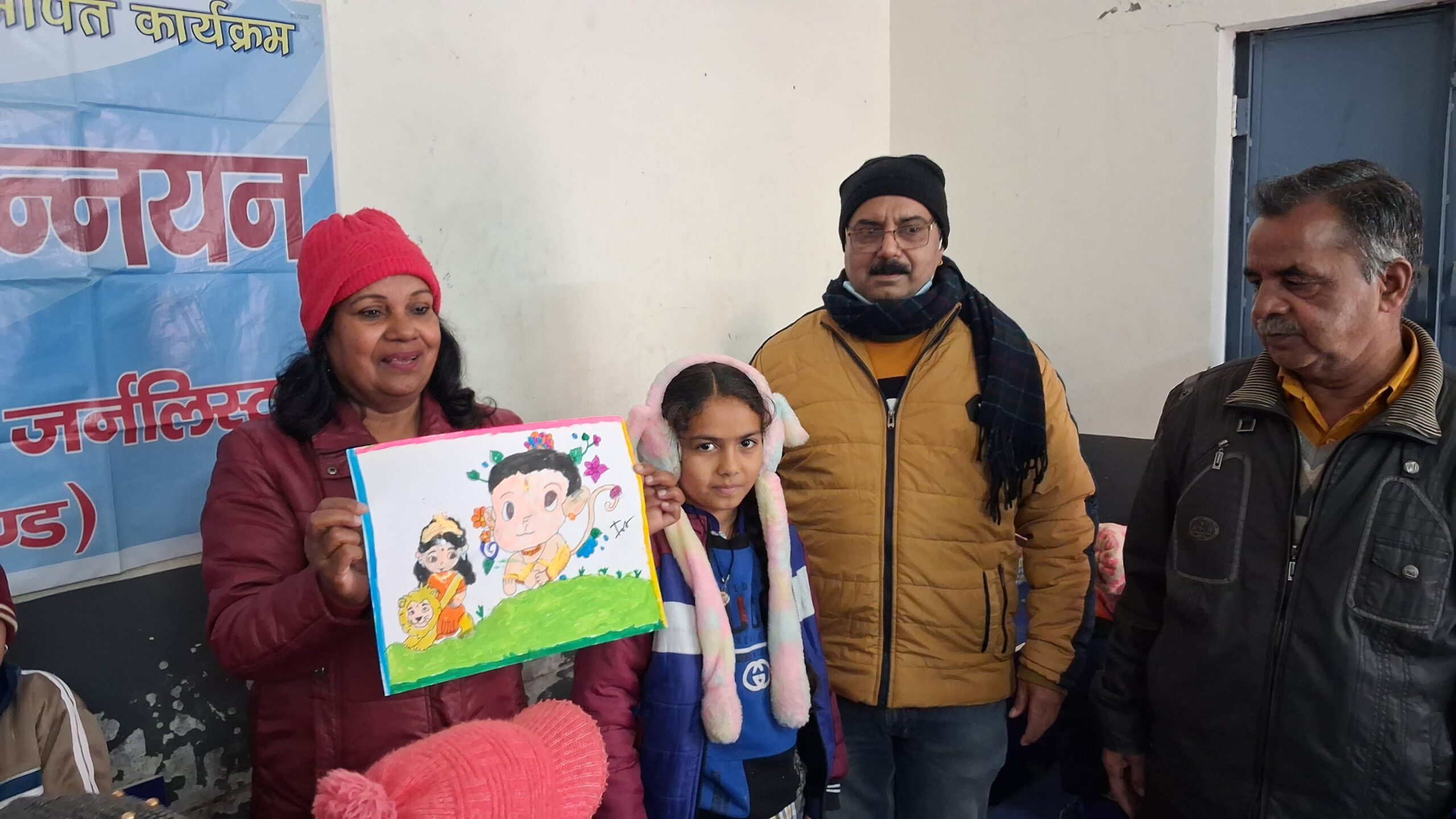 हरिद्वार. शैक्षिक उन्नयन श्रृंखला के तहत नेशनलिस्ट यूनियन ऑफ जर्नलिस्ट्स (NUJ Uttarakhand) की हरिद्वार जनपद इकाई ने राजकीय विद्यालयों में पढ़ने वाले विद्यार्थियों के लिए आज सुभाषनगर स्थित राजकीय प्राथमिक विद्यालय में प्रकृति चित्रण पर कला प्रतियोगिता का आयोजन किया जिसमें बड़ी संख्या में विद्यार्थियों ने प्रतिभाग किया. प्रतियोगिता के उपरांत सर्वश्रेष्ठ कलाकृति बनाने वाले विद्यार्थियों को पुरस्कृत कर सम्मानित किया. गया. जिसमें पांचवी कक्षा के वर्ग में कु. महिमा ने प्रथम, पल्लवी ने द्वितीय और अंजलि ने तृतीय स्थान प्राप्त किया. कक्षा एक से पांच तक के अन्य वर्गों में रौनक, राजवीर, राधा, ममता, रिंकी, आकृति, गीता, आंचल वंदना और अर्चना ने भी सुन्दर चित्र बना कर सांत्वना पुरस्कार प्राप्त किये. प्रतियोगिता के दौरान छोटे-छोटे बच्चों में कला व प्रतिभा का अद्भुत संगम देखने को मिला।